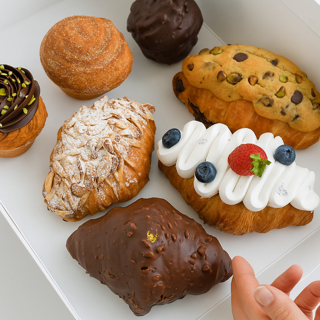 Indulge in a luxurious selection of croissants and cruffins, featuring delightful flavors like Classic cinnamon & crème, viral pistachio crunch & chocolate, milk chocolate & coffee, fresh strawberry, dark chocolate and the trending cookie dough croissant. Each bite is a perfect balance of buttery layers and rich fillings.